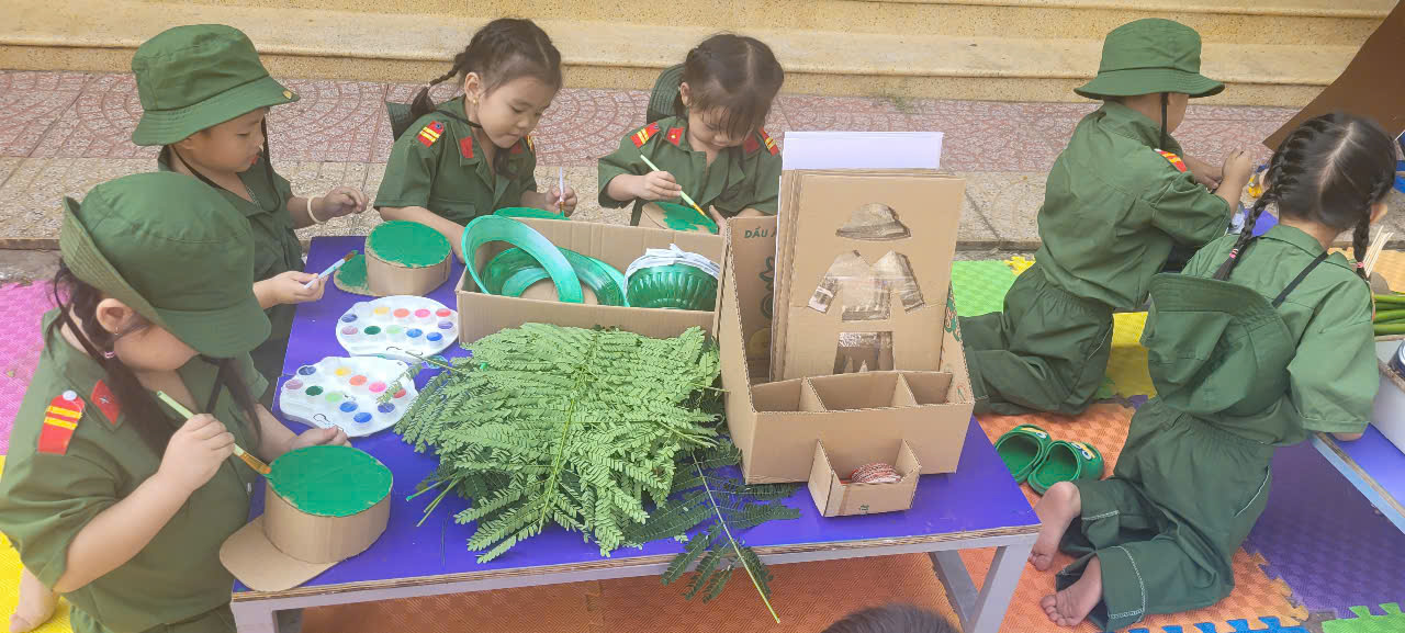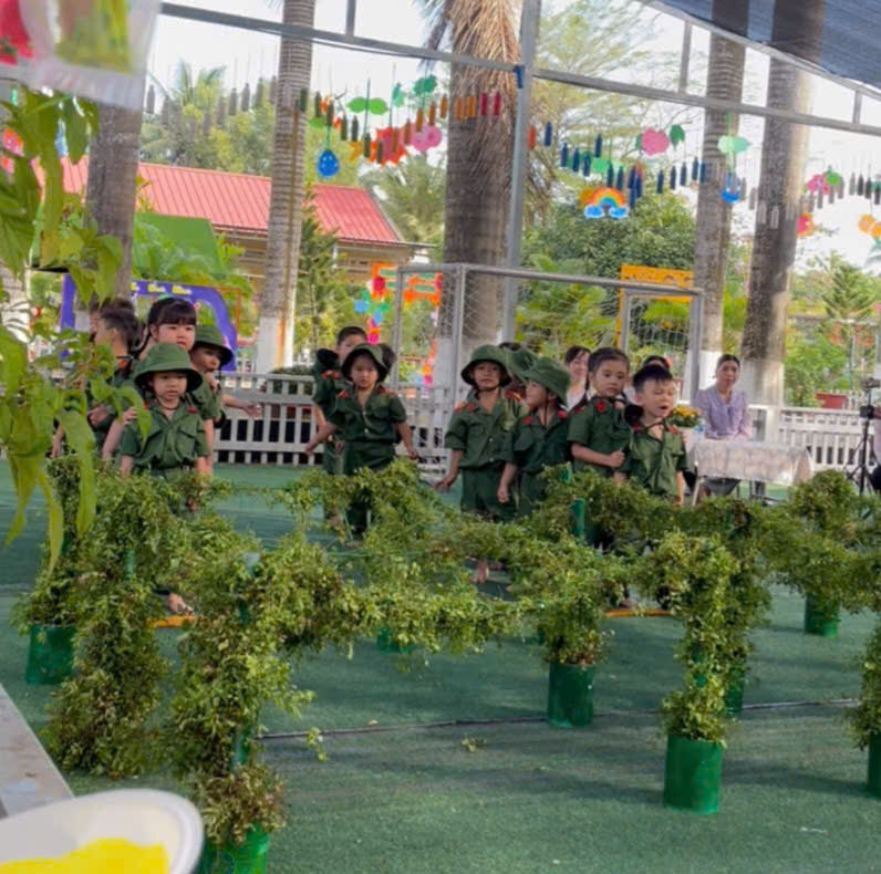 HOẠT ĐỘNG TRẢI NGHIỆM : " BÉ LÀM CHÚ BỘ ĐỘI TÍ HON" CỦA TRƯỜNG MẦM NON BÌNH MINH.