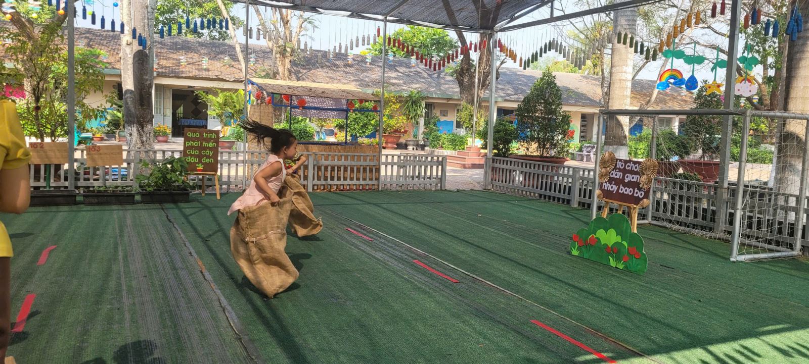 Hoạt động vui chơi của các bé trong giờ "Hoạt động ngoài trời" của cô và trẻ trường mầm non Bình Minh